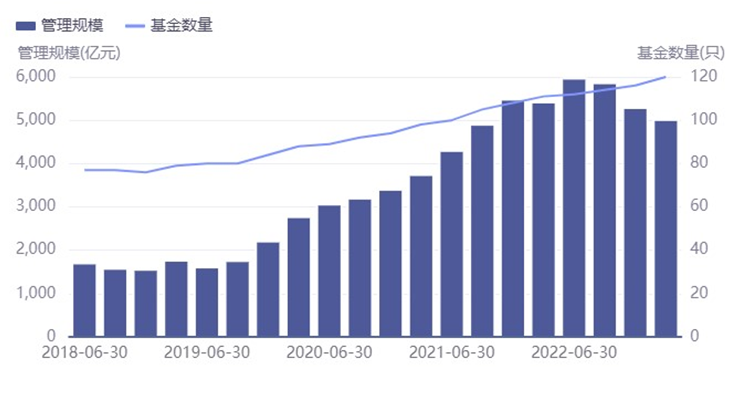 自2019年起,交银施罗德基金公募规模维持较快速度增长,然而近1年在“股债双杀”之下,规模已有所萎缩。据同花顺iFinD数据,2022年中期,交银施罗德基金总规模增长至历史高峰,达到5963.59亿元,逼近六千亿元关口,但最终冲刺失利,2022年末管理规模降至5284.61亿元。