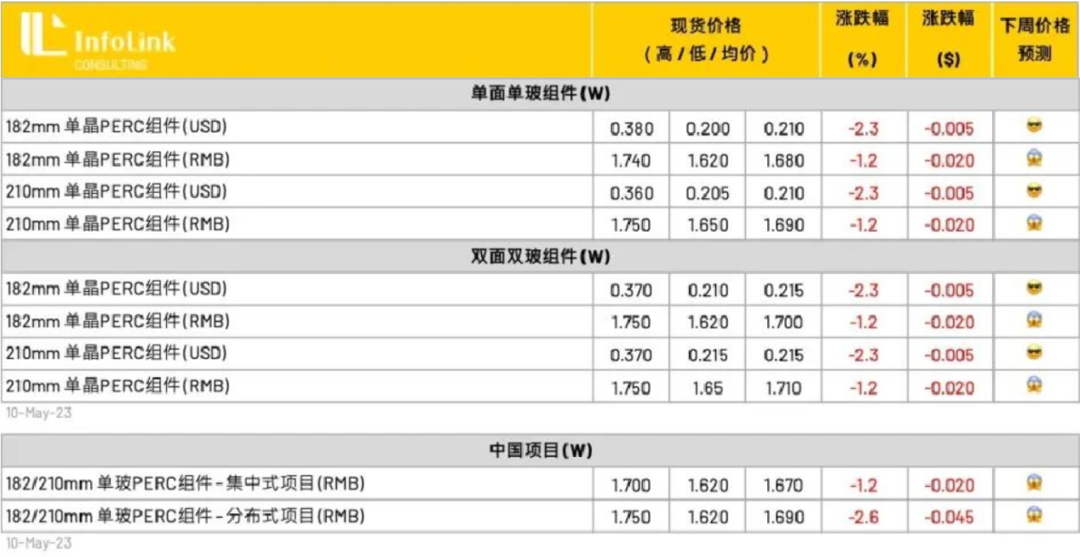 去年受硅料价格影响,组件成本居高不下。一度影响到下游光伏电站装机的积极性。现在硅料价格下行,组件的价格也相应进入下行通道。InfoLink咨询周报显示,上周单玻组件执行价格区间已达每瓦1.62-1.75元/W之间。