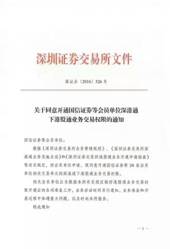 据界面新闻记者从券商人士处了解,11月3日,深交所相相关券商下发文件,表示经过会员单位申请,“同意开通国信证券等24家会员单位相关交易单元的深港通下港股通业务交易权限”,并称“自发送之日起执行”。
