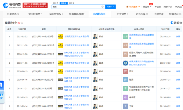 与此同时,戴威也因关联企业未履行法定义务而被法院列为失信被执行人。愤怒的供应商甚至多次将戴威告上法庭,但戴威毕竟早已不是ofo的法人代表,虽然限制了高消费,但对他的生活并没有造成太大影响。