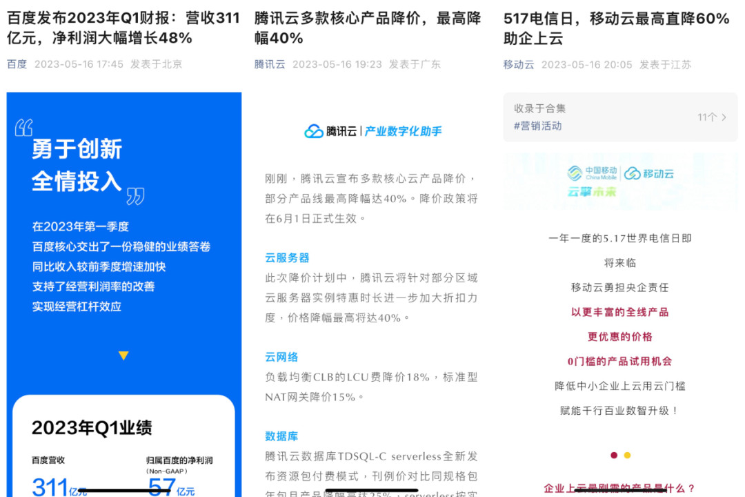 百度、腾讯云、移动云先后发布官宣消息