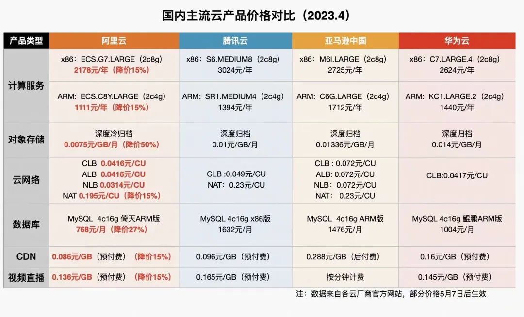 越来越多的云厂商再次加入价格竞争战,很难不与此前阿里云启动“史上最大规模降价”的行为产生联想。4月26日,阿里云宣布核心产品价格全线下调15%-50%,存储产品最高降价50%。降价后的多项云产品,远低于主流云厂商服务价格。
