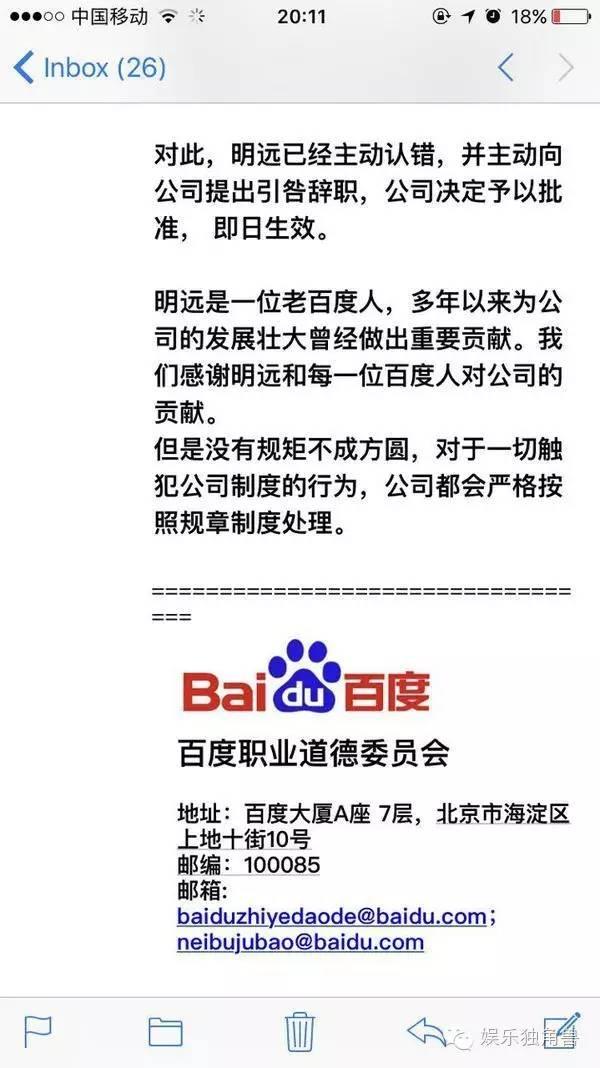 以下为百度内部邮件全文: