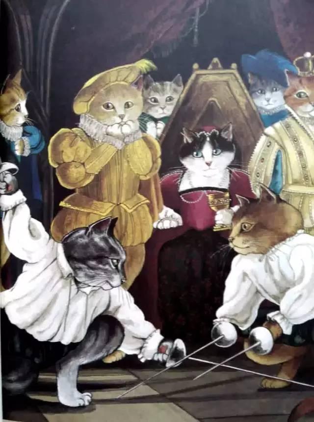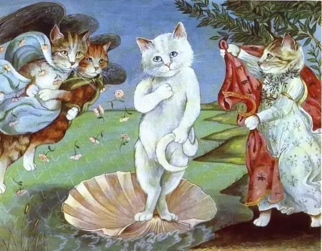 1、当今世界最著名的网红显然已不是人,而是猫。而在英国画家苏珊•赫伯特的笔下,整个人类文明史都被猫给占领。无论是莎士比亚的戏剧,拉斐尔前派的画作还是经典电影,主人公都变成了猫咪。