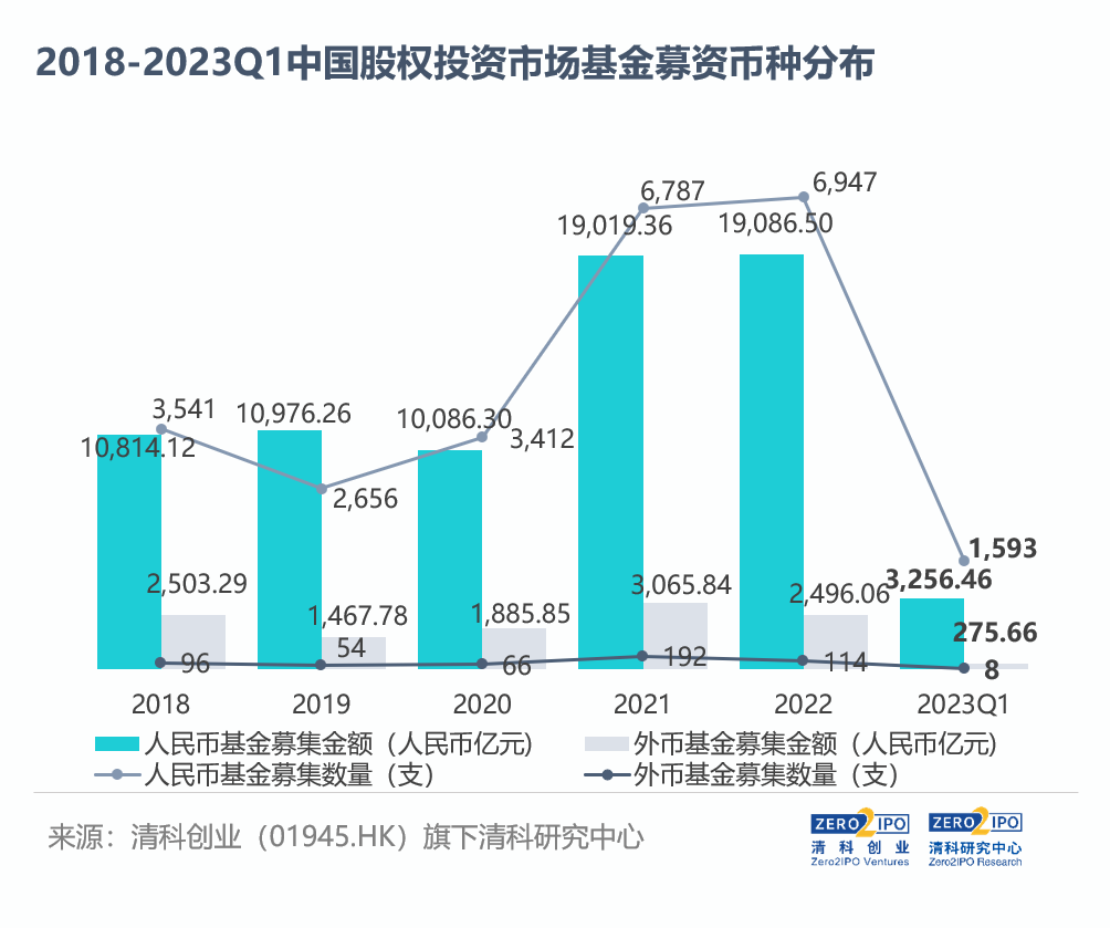 募资依旧艰难。2023年第一季度,行业合规性要求持续增强,加之部分LP流动性有待释放,募资市场有所回落,整体新募集基金数量和金额分别为1601支、3500亿元人民币,同比下降7.6%、33.0%。其中,外币基金募资尤为艰巨,2023年第一季度共8支外币基金完成关账,数量仅为去年同期的28.6%,降幅超过七成;募资规模约为275.66亿元人民币,同比下降41.5%。