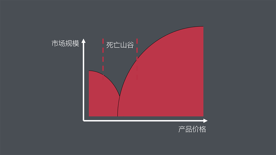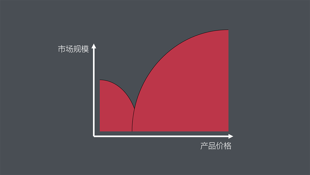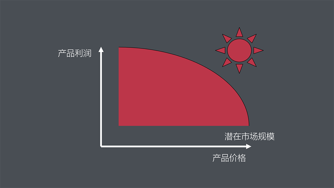东北角吸引力也带来一个弊端:通常情况下,品类潜在市场规模沿东北向递减。价格越低、市场越大;价格越高,潜在容量就越低。
