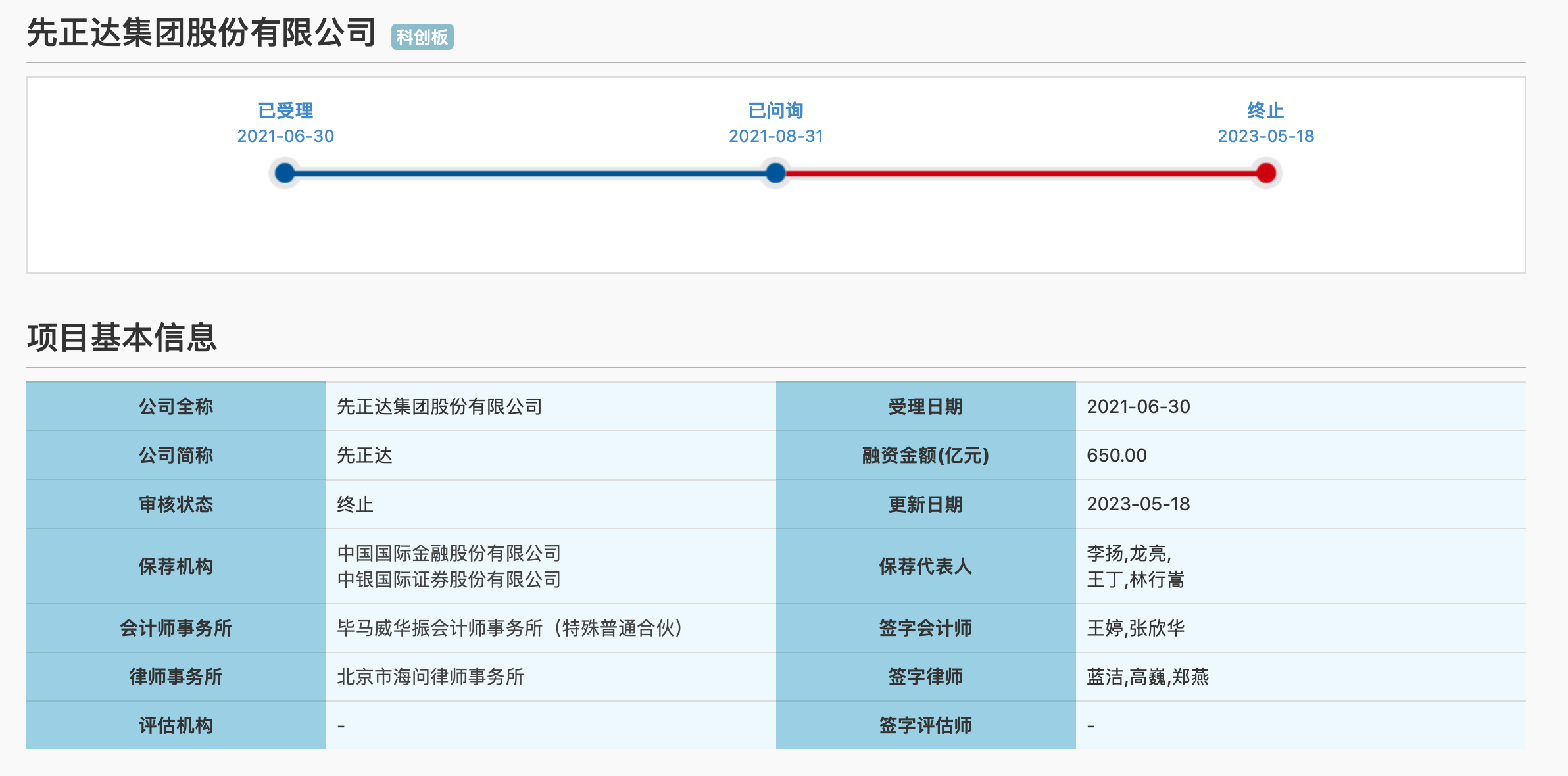 5月18日,上交所网站显示,先正达集团股份有限公司科创板IPO审核状态变更为“终止”。