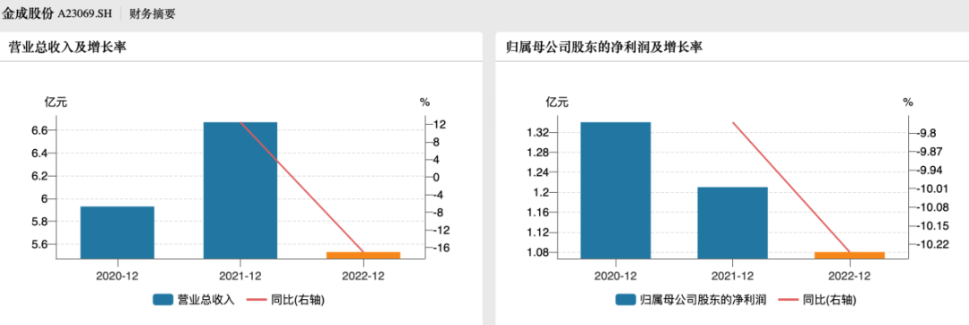 近年来,金成股份不仅营收波动明显,净利润更是连年下滑。