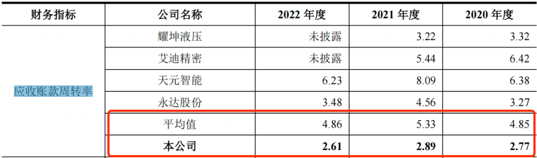 金成股份的应收账款周转率也是远低于同行公司。报告期内,金成股份的应收账款周转率分别为2.77、2.89和2.61,而同行公司的应收账款周转率平均值分别为4.85、5.33和4.86。
