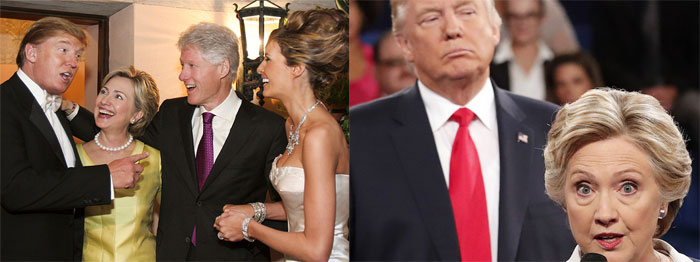 十年前,野心勃勃的商人特朗普以金主的身份周旋在纽约的政治圈子里:在他人生的第三次婚礼上,已开始在政坛大展身手的希拉里笑容满面;十年后,一度把希拉里丈夫、前总统克林顿视为成功模板的特朗普,与他们成了同一战壕的“敌人”:在将杰布·布什等一干共和党总统候选人击退后,他以傲然不羁的姿态站在了美国白宫的门口——此时,他的对手只剩下了希拉里。