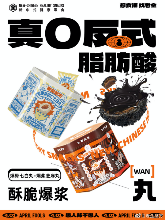 “老金磨方”品牌的黑芝麻丸产品主打“滋补零食化,零食健康化”的理念,创新采用了黑芝麻丸独立小包装,并且以充氮的方式锁鲜,在产品外观上则采用六角罐形式突显差异化,备受年轻消费者追捧。2019年至2022年,老金磨方黑芝麻丸全网销量第一,全网累计热销超3.5亿颗,全网用户累计破2000万。