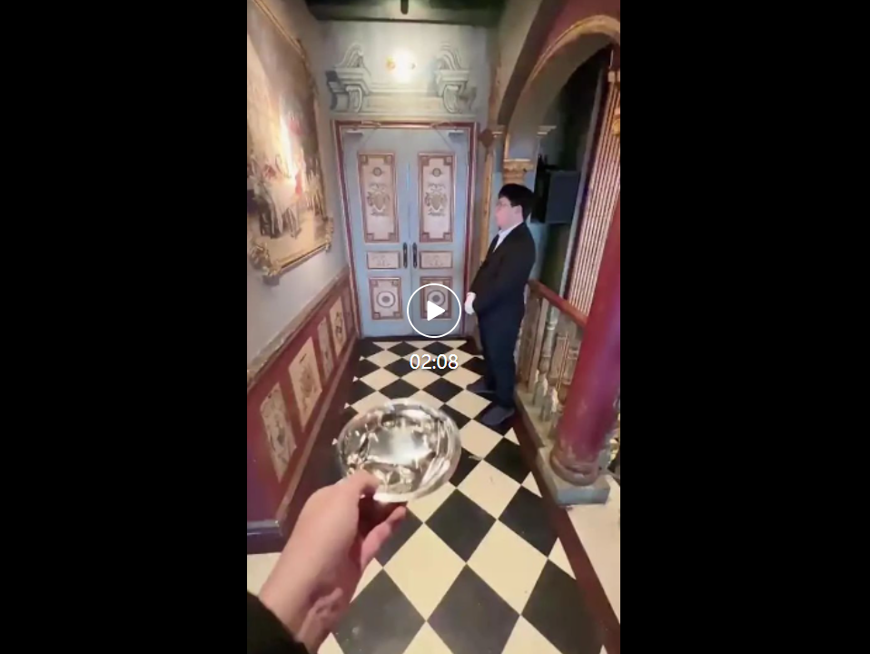 1、从吸睛点来看:开头手持摄影方式比较原生, 在豪华酒店场景里只见一人拿碗乞讨【矛盾/对比】,同时引发受众好奇:讨饭的怎么进来的?会发生什么?【制造悬疑】