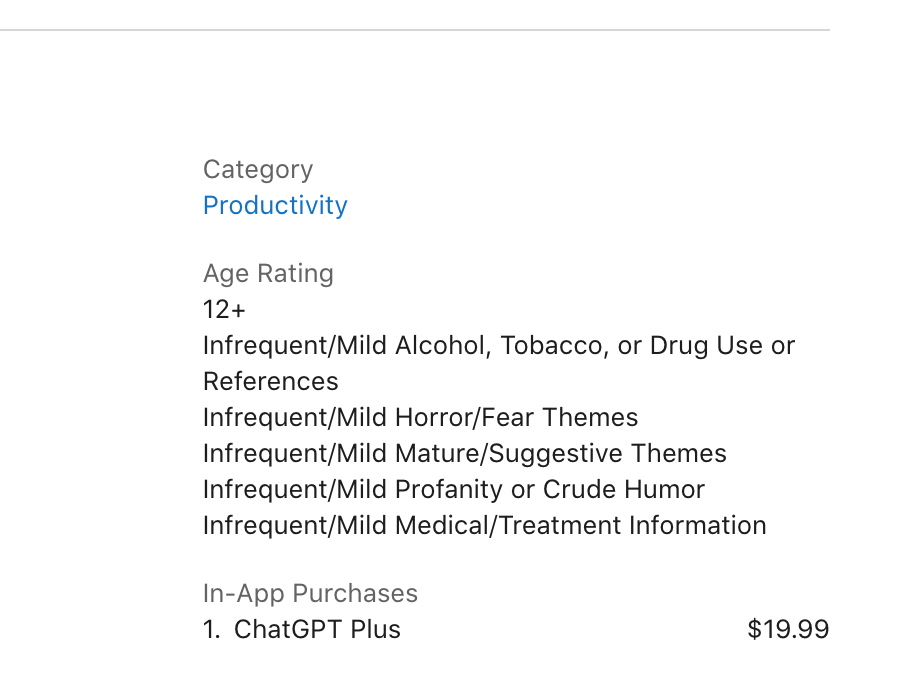 实操上,ChatGPT iOS应用程序暂不支持联网和插件集,在绑定ChatGPT账号之后就可以免费使用,登陆个人中心之后,可以直接升级到ChatGPT Plus,在苹果App Store里完成付费过程,价格是每月19.9美元。