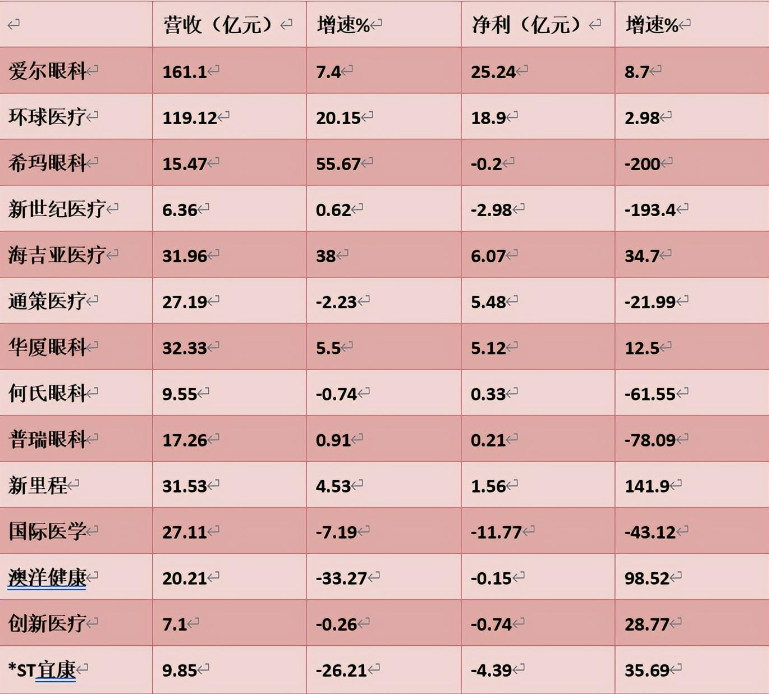 值得注意的是,民营眼科医院业绩相对表现较好。爱尔眼科、华厦眼科、何氏眼科和普瑞眼科四大眼科医院均为盈利状况,但何氏眼科和普瑞眼科归母净利润分别同比下降61.55%、78.09%,爱尔眼科和华厦眼科净利润增速较往年也明显放缓。