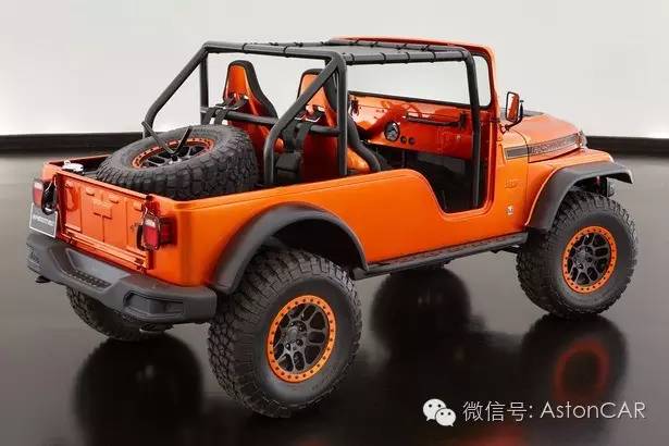 今年是Jeep品牌诞生的第75周年,在三月份的摩崖复活节之旅上已经推出了7款复古概念车,而这一次SEMA车展,Jeep依然选择了混搭复古风。这一辆Jeep CJ66采用了1966款Jeep CJ的车身、牧马人TJ的底盘以及牧马人JK的前脸。另外,设计师将前风挡玻璃砍掉了两英寸,用防滚架来作为车顶。