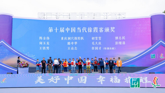 随后活动现场举行了第十届“中国当代徐霞客”颁奖仪式,重庆洞穴探险队等10个团队与个人获得第十届“中国当代徐霞客”称号,任国才获得第十届“中国当代徐霞客”特别贡献荣誉。现场还上线了《跨越十届的霞客记忆》纪念宣传片,全面回顾“中国当代徐霞客”寻访活动的标志性成果。