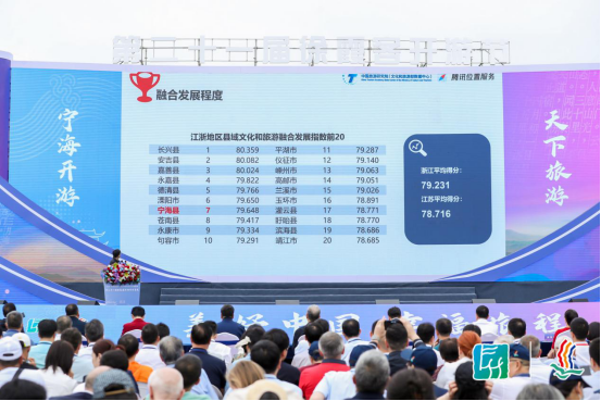 开幕式在“龙腾宁海”表演中拉开序幕。中国旅游研究院发布了“县域文旅融合指数”。该指数结合人口、生产力等基础因素,从文旅融合发展水平、文旅供给质量、文旅市场活跃度、文旅市场满意度等总指数和分项指数进行综合评价分析。长兴县、宁海县、溧阳市等地上榜“县域文旅融合指数”十强。“竞争力发展指数”“协同发展度”十强同时发布。