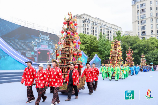 开幕式结束后,“缑城阆风”主题表演暨“奔赴山海”大巡游正式启动。一代游圣徐霞客在宁海乡亲的簇拥与欢送下,踏出了自宁海出西门,生动再现了四百多年前徐霞客从宁海出发驰骛数万里的情景。上海音乐学院师生带来原创抗疫歌曲《花》。来自四川普格、湖北浠水、安徽龙子湖、浙江景宁的“山海共富”方队,以及“大美长街”“多彩胡陈”“沥水之阳”等全县18乡镇(街道)的巡游方队从西门出发,开始巡游表演。十里红妆、前童古亭抬阁、西岙抬龙、冠庄船灯等一批极具宁海地方特色的表演集中亮相,宁海对口山海协作的普格等四地也带来了极富当地民族文化特色的节目巡游队伍出西门城楼后,沿徐霞客大道一路巡游至兴宁廊桥。整个巡游活动共有2000余人参加演出,创历届开游节之最。