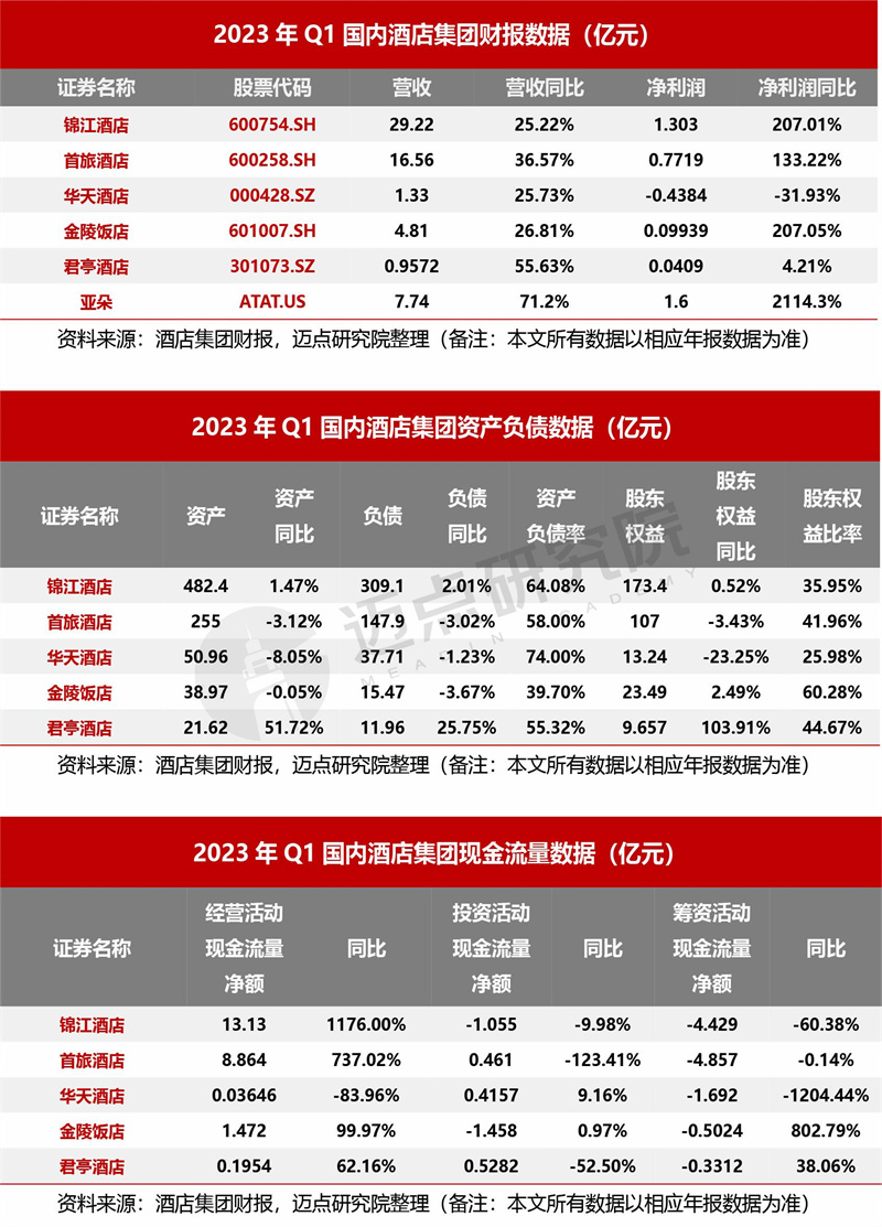 二、2023Q1国内酒店集团财报表现:业绩上涨背后资金大额流转的困难性