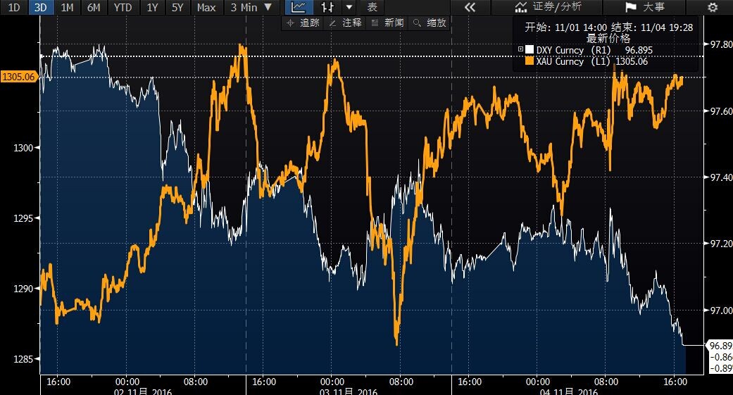 法国外贸银行(Natixis)分析师表示,美国总统大选变局刺激了黄金的避险需求。原先市场普遍认为希拉里当选美国总统板上钉钉,如今随着最新民调显示特朗普支持率提升,各路投资机构争相买入黄金应对美国总统大选的黑天鹅事件。