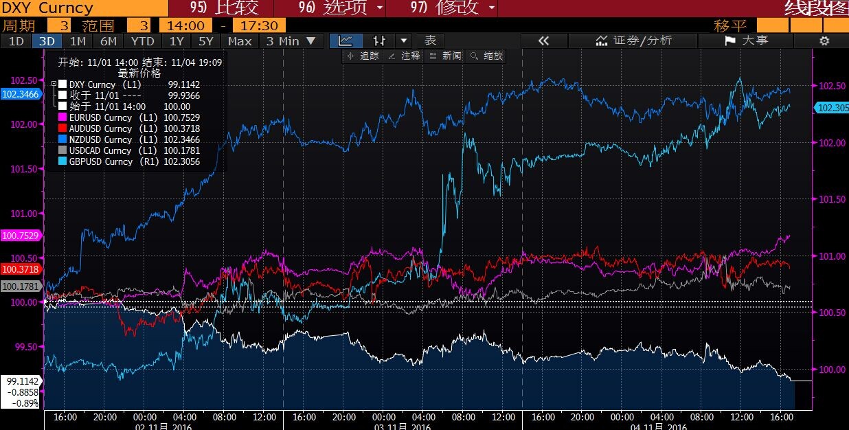 但是在4年一选的美国总统铁王座之争中,都显得太年轻。上周是美国大选决战前的最后一个星期,市场对大选的不确定性情绪已经主导了市场走势。