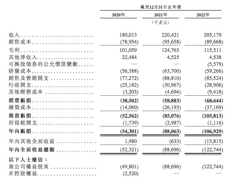 在2020年 、2021年及2022年 ,微创心律的营收分别是1.8亿美元、2.204亿美元及2.052亿美元,同期的净亏损分别是5430万美元、8810万美元及1.069亿美元。