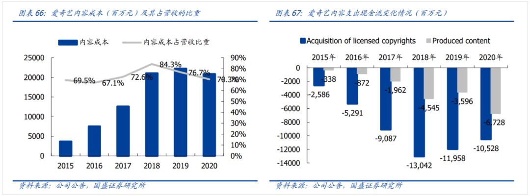 以资本投入来说,自制内容不需要再哄抢,价格泡沫被大大挤出。以爱奇艺为例,2018加大自制后,其内容支出现金流持续下降。