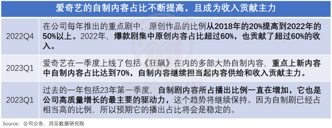 “过去的一个季度,我们自制内容占到了关键剧集的70%,是高质量增长的最大驱动力,也是行业最高水平,这个趋势将在未来继续保持。”爱奇艺最新一季财报电话会议上,管理层为自制剧站台。
