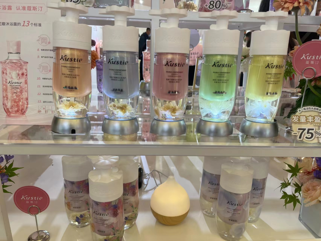 譬如,蔻斯汀在此次CBE上主推的产品是洗养合一的双舱洗发水,采用外瓶是真鲜花的洗发水,内瓶是头皮护理精华的双舱结构。蔻斯汀市场总监刘娟介绍,“这一产品线将是品牌的第二增长曲线,也是品牌未来最大的战略大单品。”