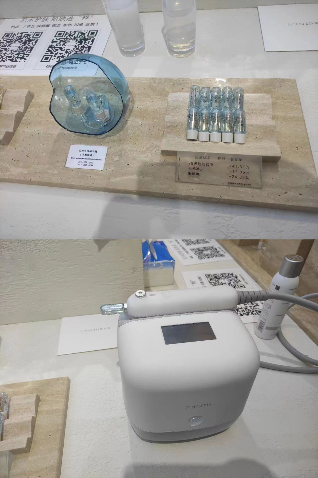 摄于养生堂展位(上为桦树冬孕精华露,下为配套的无创水光仪)