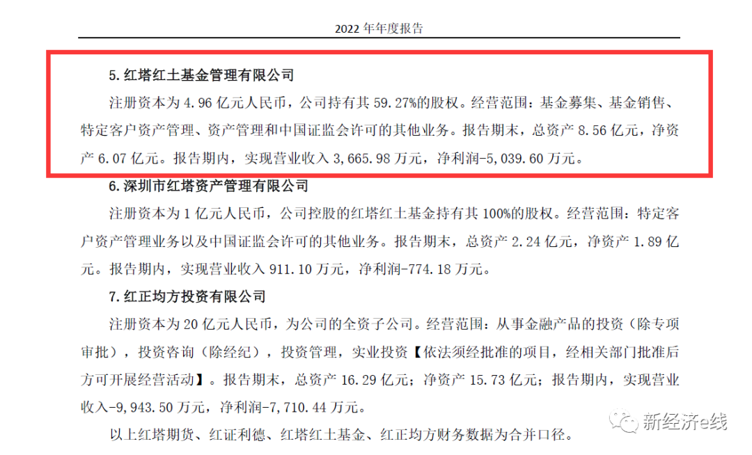 作为红塔红土基金全资子公司,深圳市红塔资产管理有限公司(红塔资产)经营业绩也不甚理想。报告期末,红塔资产总资产2.24亿元,净资产1.89亿元。报告期内,实现营业收入911.10万元,净利润-774.18万元。