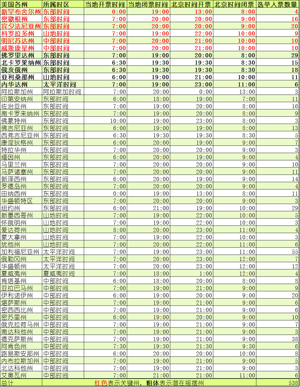 谎言与猛料齐飞的美国总统大选将于11月8日正式进行投票,选民将在这一天选出各州的选举人团,届时铁王座花落谁家将尘埃落定。不过,田纳西、内华达、佛罗里达、艾利桑娜、北卡罗来纳等38个州都允许提前投票。