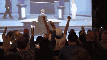 为了拍摄天天和川普的见面,我们在拉斯维加斯的川普酒店大堂内守了一整天,天天则和一帮其他亚太裔川普支持者在酒店内开了一场所谓的“秘密会议”,按计划川普将出现在这场秘密会议上,与各位代表见面。等到当天晚上,一位川普竞选团队的工作人员走进“秘密会议”现场,举起 iPad 向大家播放了一段川普对亚太裔选民的讲话,宣布川普不会与大家见面了。