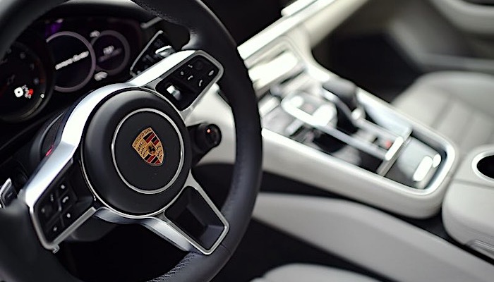 内饰简直就是颠覆性的变化——一个迷人的新世界。基于这个品牌的赛车历史形成的传统,发动机启动钥匙依然布置在方向盘柱的左侧,而位于仪表板中央的依然是发动机转速表。巨大的12英寸中央显示屏PCM系统采用了触摸方式操作,因此不需要太多物理按键和旋钮,而功能则更丰富。几乎所有的操作都可通过触摸屏和中控台来完成,其玻璃外观洋溢着科技魅力。