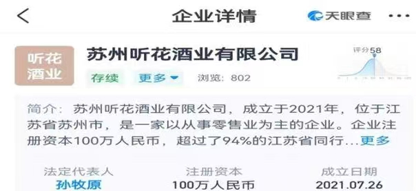另外,据天眼查显示,苏州听花酒业成立于2021年7月26日,但该客户在2021年6月份便成为了公司的经销商。