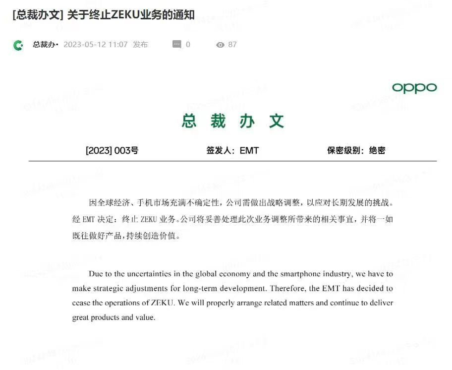5 月 12 日上午,OPPO 突然宣布关停旗下芯片设计公司哲库科技(ZEKU)所有业务。