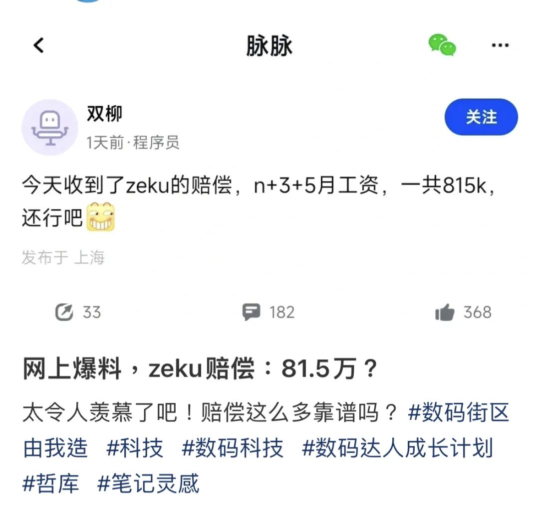 虽然哲库的解散时发突然,但哲库确实给所有员工开出了足够优厚的离职补偿,甚至种种关于哲库离职补偿的截图都在各种社交媒体平台流传,得到了以往只有外企裁员才能得到的待遇。