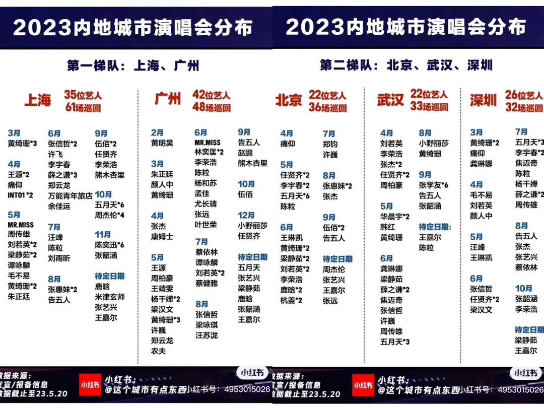 除了报复性出游还有报复性看演唱会,今年演出市场的火爆有目共睹。雨后春笋般的演唱会覆盖了全国大大小小的城市,单是5月20日这一天,就有14个明星在内地不同城市开演唱会。包括一众乐坛的老将新秀,比如张杰、张信哲、薛之谦、梁静茹、毛不易、小鬼等。