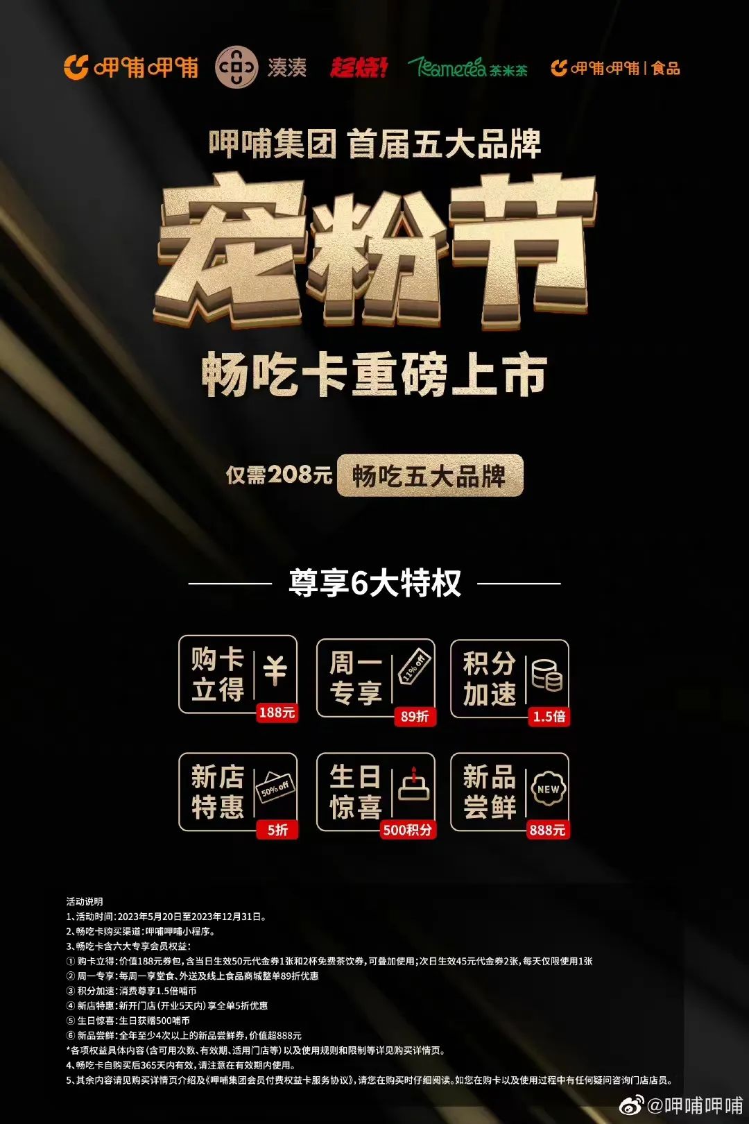近日,呷哺集团宣布推行付费会员制,上线208元超级会员畅吃卡,用户可享受购卡、折扣、积分、新店、生日、新品六大特权。呷哺集团旗下呷哺呷哺、湊湊、趁烧、茶米茶、呷哺食品五大品牌通用该卡,此外还可在微信小程序等线上渠道使用。同时,付费会员还可以享受“188元现金礼券”“每周一8.9折”“新店5折”“超888元的免费尝鲜礼券”等系列付费会员专属优惠福利,享受全年总价值超1888元的优惠。(中国商报)