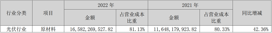 另外,2022年阳光电源共采购原材料近166亿,比2021年增长49.34亿。巧合的是,2022年,阳光电源的原材料存货与库存商品存货,较2021年也恰恰多出了49亿多,其中原材料库存增加了24个亿,库存商品增加了25个亿。