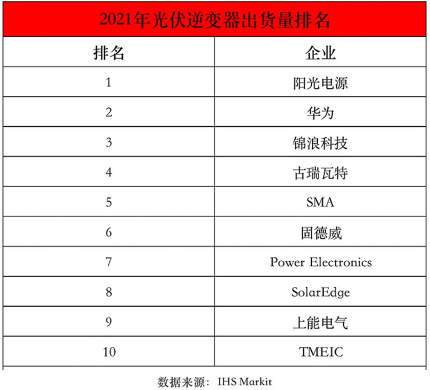 如,阳光电源和华为,都认为自己是逆变器的行业老大。不同的第三方机构有不同的答案。根据伍德·麦肯兹公布的数据,华为在2021年位列光伏逆变器出货量第一,但IHS Markit认为阳光电源是第一,华为是老二。不仅如此,古瑞瓦特和锦浪,固德威与SMA,两家机构的榜单排名也正好前后颠倒。