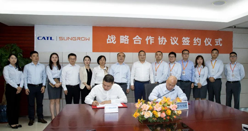图为宁德时代董事长曾毓群率队与阳光电源签约;来源:阳光电源官微