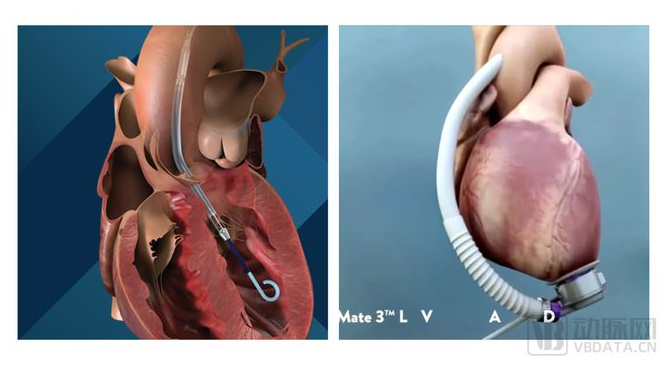 左:强生Abiomed impella介入心脏泵产品;右:雅培 heartmate 3产品