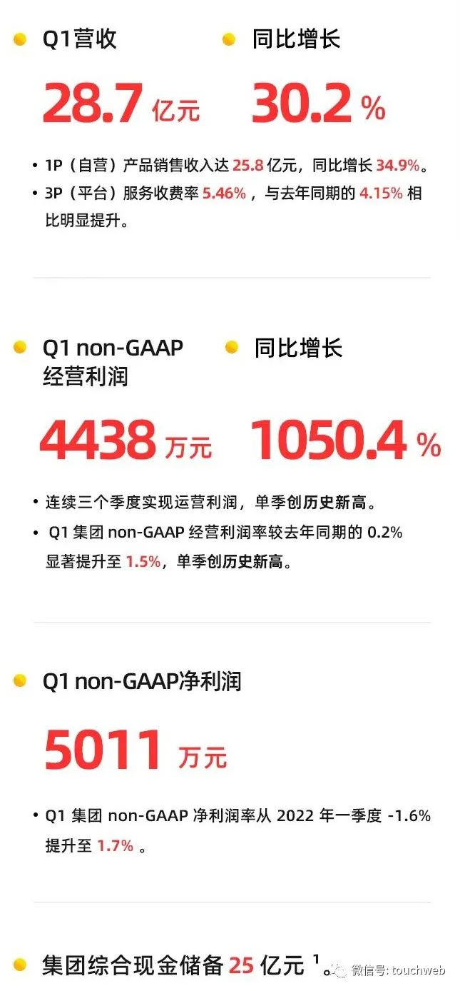 万物新生集团2023年第一季度non-GAAP运营利润为4440万元,相较上年同期的390万元增长了1050.4%;non-GAAP经营利润率由上年同期的0.2%提升至1.5%,且连续三个季度达成运营盈利。non-GAAP净利为5011万元,non-GAAP净利率达1.7%。