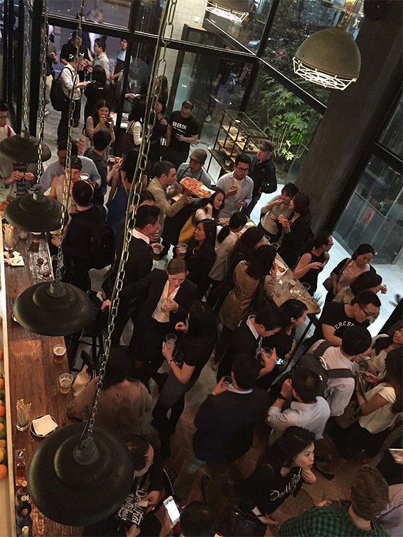 啤酒和快节奏的音乐,这并不容易在一个办公场所看到,不过跟这里开放的公共空间格局很相应,这里看起来天然适合办这样一个聚会派对。没有人设定活动进程,没有核心人物的演讲,没有人引导谈些什么主题,就像那些啤酒会参与的社交派对的场合一样。