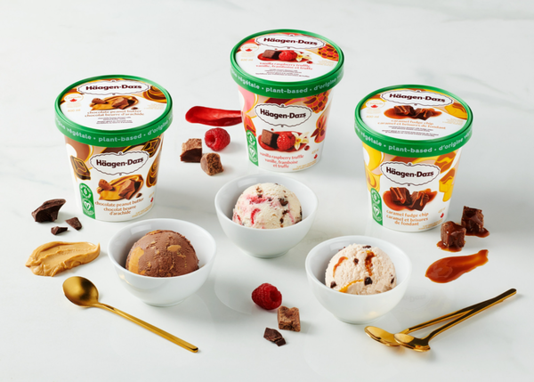 近日,哈根达斯 (H agen-Dazs) 在加拿大多伦多推出一系列全新植物基冷冻甜点,新的燕麦系列专为弹性素食者设计,包含巧克力花生酱、香草树莓松露和焦糖软糖等四种口味,规格为400mL桶装。(品牌官方)