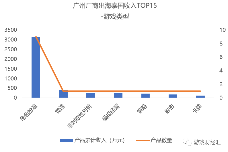 广州厂商在泰国市场偏科严重,角色扮演类产品占据重要地位。