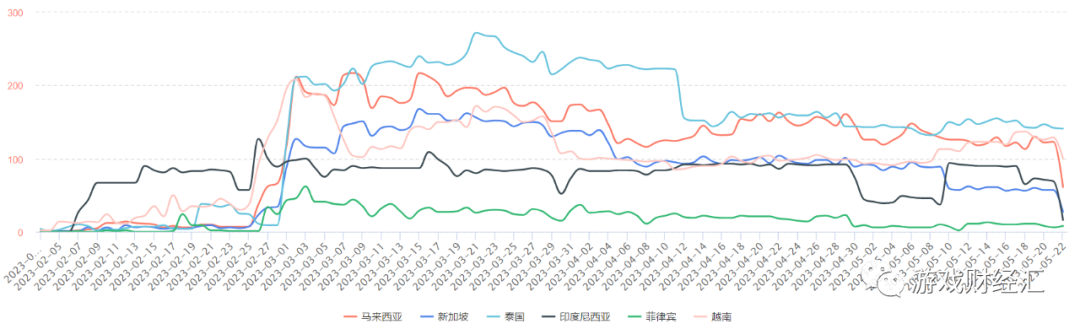 图:《天谕》在东南亚6国投放趋势;来源:DataEye数据