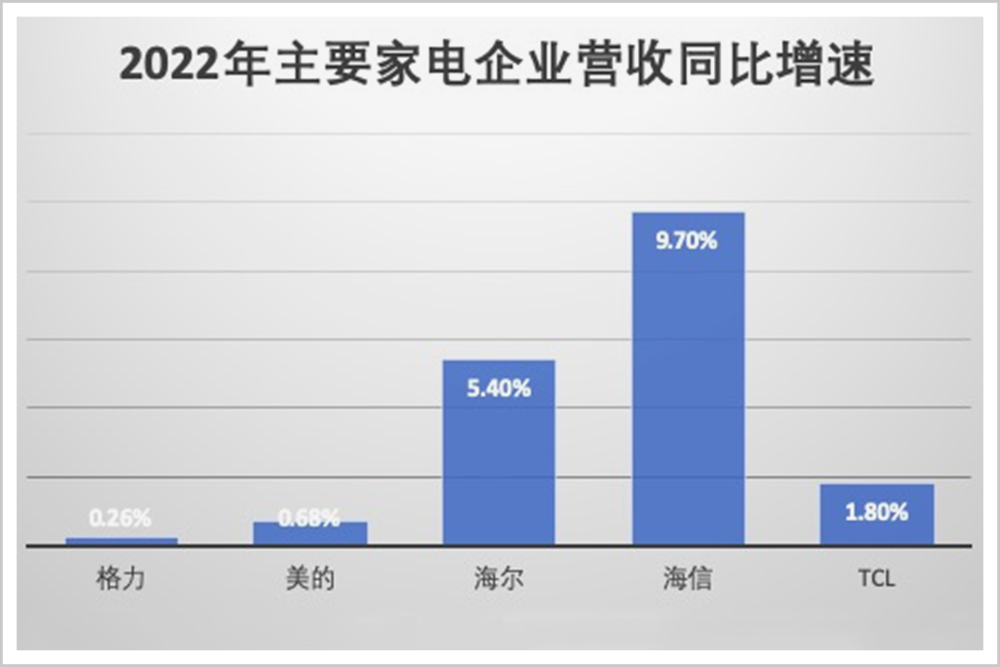 论营收增速,格力只有0.26%,在美的、海尔、海信、TCL五家企业里排名倒数第一。