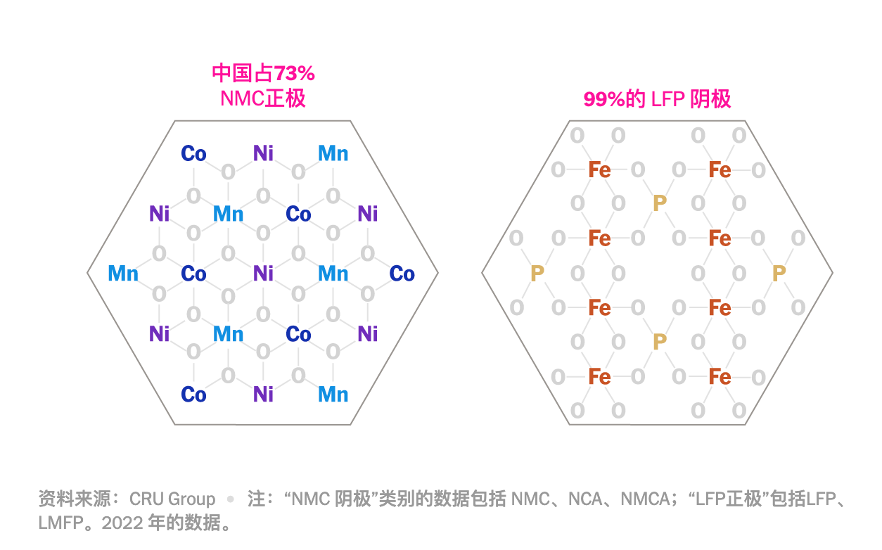 以电池最重要的组成部分是阴极为例,以前阴极使用的材料大多是镍钴锰酸锂( NMC ),它的优点在于能为电动汽车提供更长的续航里程,但成本也更高昂。于是中国企业投资了一种更廉价的替代品磷酸铁锂( LFP),目前它已经占据阴极市场的一半份额。